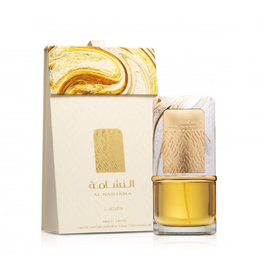 Al Nashama de Lattafa Perfumes es una fragancia de la familia olfativa para Hombres y Mujeres. Al Nashama se lanzó en 2024. Las Notas de Salida son pimienta rosa, bergamota y salvia; las Notas de Corazón son ciruela, jazmín y pimienta negra; las Notas de Fondo son Cuero Saffiano, ámbar, pachulí y musgo.