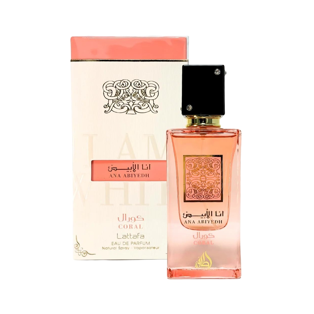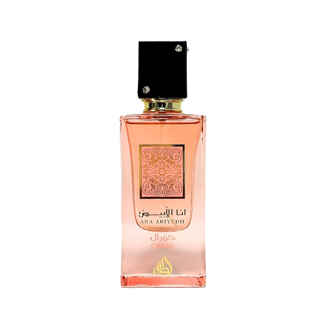 Ana Abiyedh Coral de Lattafa es una fragancia floral frutal unisex que evoca un ambiente veraniego y luminoso, comenzando con una mezcla jugosa y fresca de frutas que se funde con un corazón cremoso y tropical de coco y flores blancas, y culmina en una estela cálida y suave de vainilla, ámbar y almizcle. Es ideal para quienes buscan un aroma fresco, alegre y fácil de llevar, especialmente en climas cálidos, durante el día o en actividades al aire libre.