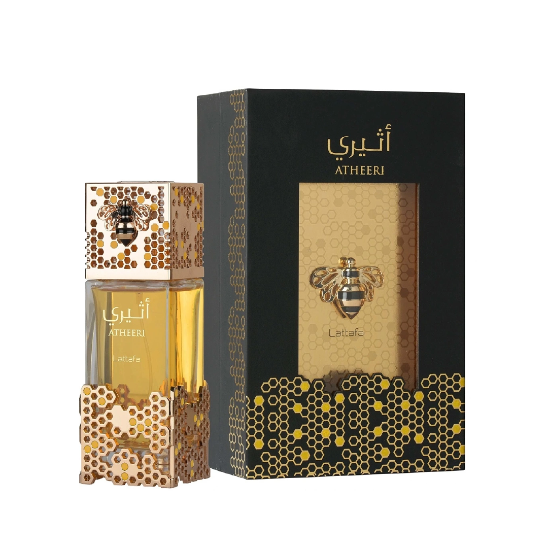 Atheeri de Lattafa Perfumes es una fragancia de la familia olfativa Oriental Floral para Mujeres. Atheeri se lanzó en 2025. Las Notas de Salida son flor de pasionaria y Gota del rocío; las Notas de Corazón son orquídea y jazmín; las Notas de Fondo son Amberwood y vainilla.