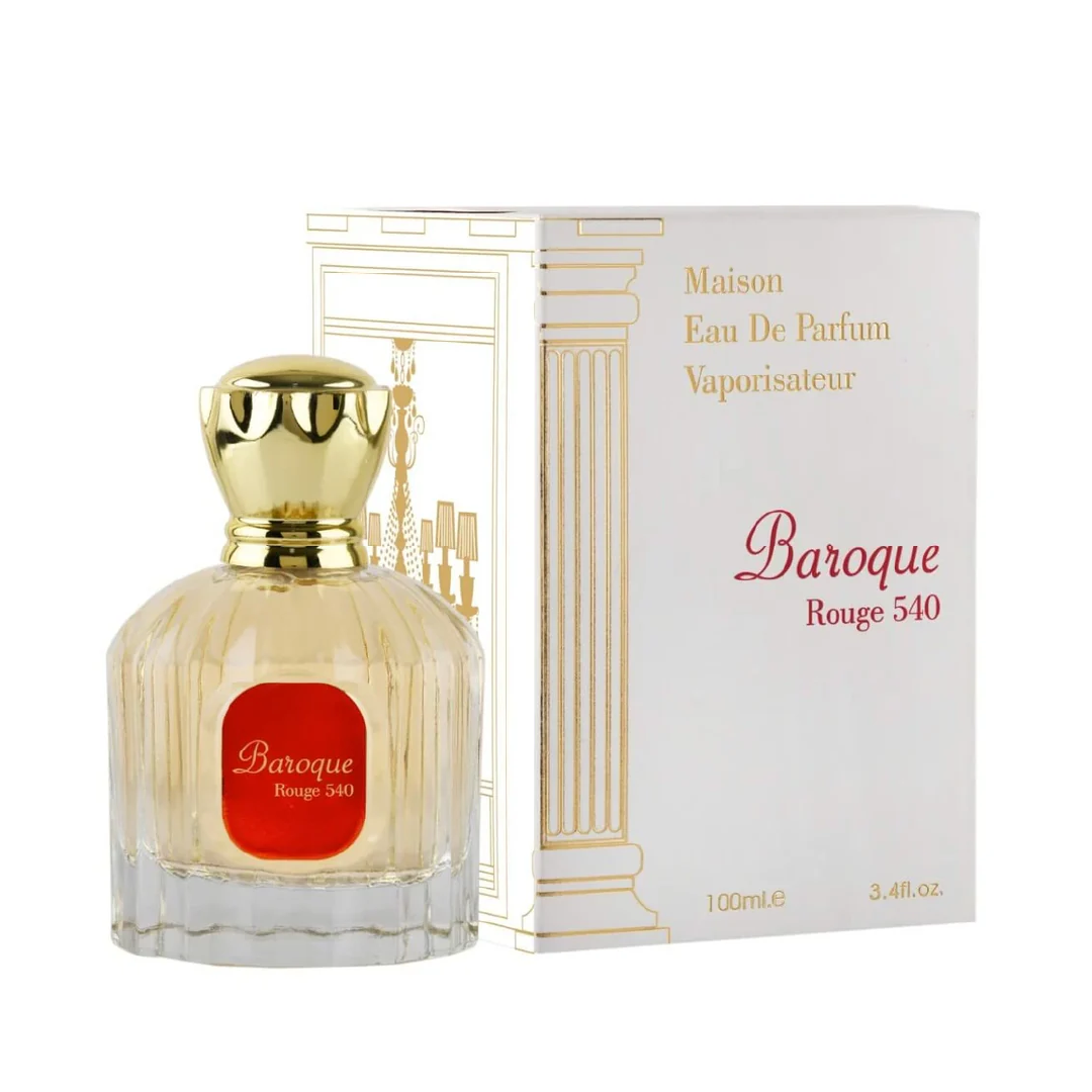 Baroque Rouge 540 de Maison Alhambra es una fragancia de la familia olfativa Oriental para Hombres y Mujeres. Baroque Rouge 540 se lanzó en 2021. Las Notas de Salida son azafrán, pera y mandarina; las Notas de Corazón son jazmín, ylang-ylang y azucena; las Notas de Fondo son madera de cachemira, ámbar y almizcle.