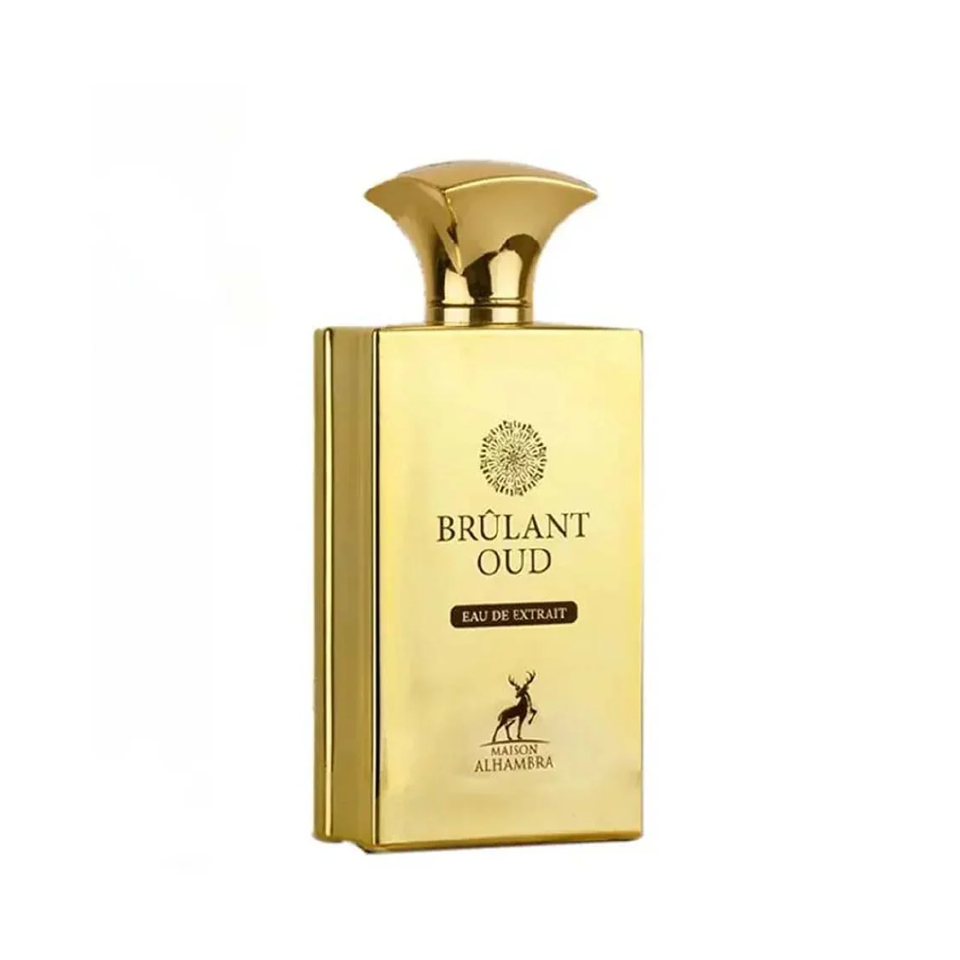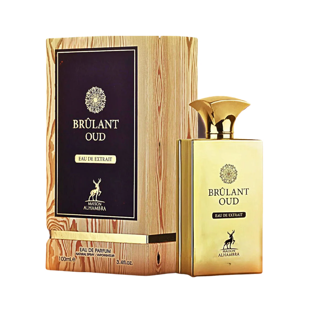 Brûlant Oud de Maison Alhambra es una fragancia de la familia olfativa Amaderada Especiada para Hombres. Brûlant Oud se lanzó en 2022. Las Notas de Salida son coñac, comino, toronja (pomelo), cardamomo, nuez moscada, jengibre y azafrán; las Notas de Corazón son tintura de pelo de cabra, pistacho (pistache), benjuí, mirra, geranio, canela, pachulí y resina almáciga del lentisco; las Notas de Fondo son Piel, Notas de animal, incienso, salvia y sándalo.