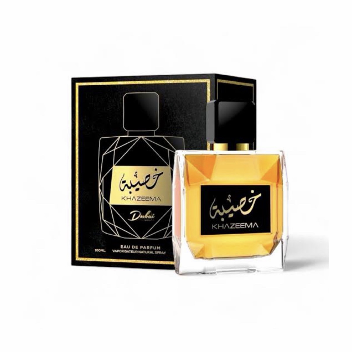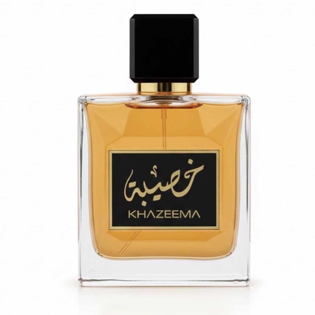 Khazeema es un perfume que evoca sofisticación y opulencia. Inicia con una ráfaga cálida y especiada gracias a la canela y la nuez moscada, equilibrada con el toque cítrico de la bergamota.