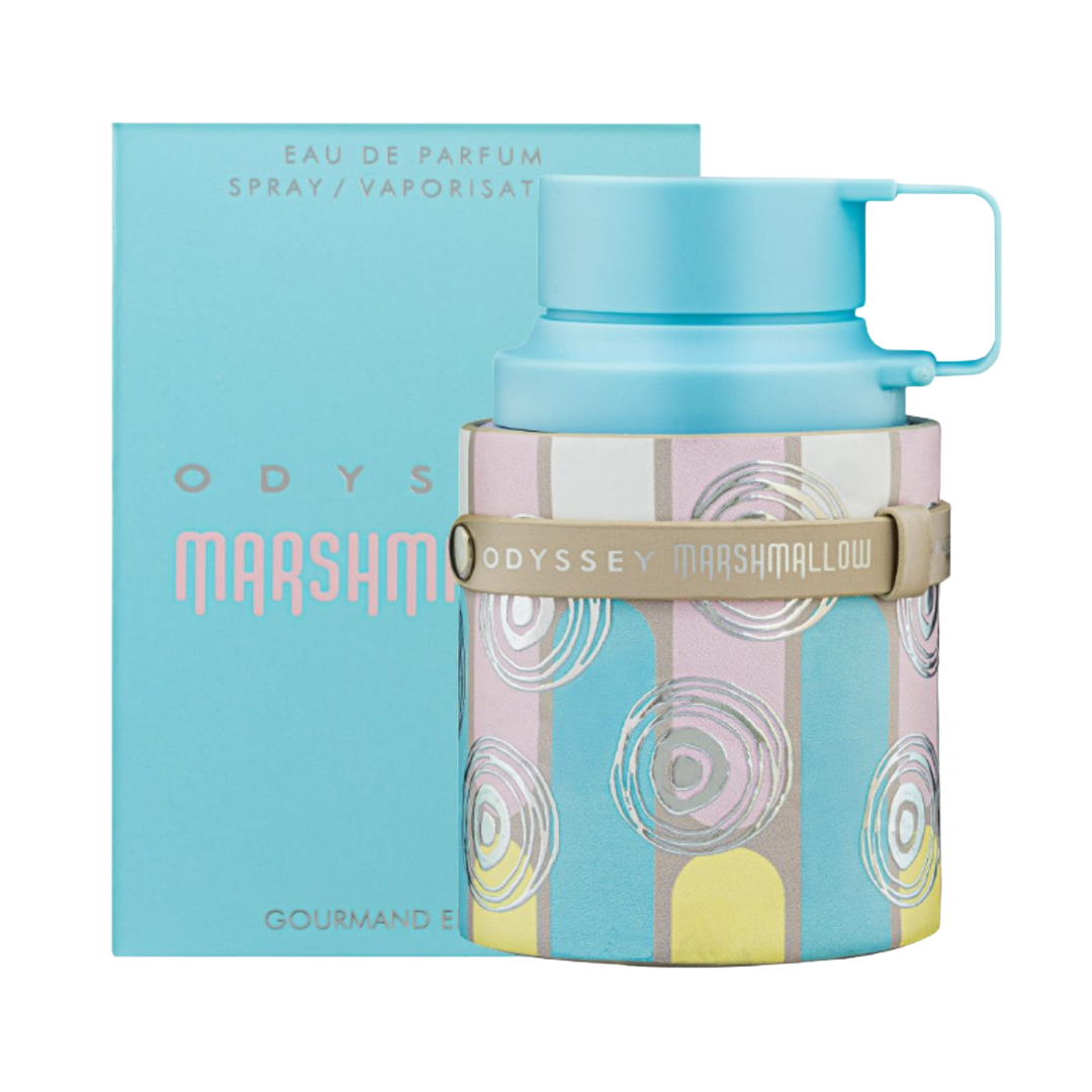 Odyssey Marshmallow de Armaf es una fragancia floral-frutal gourmand que combina una salida chispeante y dulce con un corazón cremoso de malvavisco y frutas maduras, asentándose en una base cálida de vainilla, praliné y mascarpone. Su perfil evoca una sensación acogedora y dulce — como una nube golosa y suave — ideal para quienes disfrutan de perfumes dulces, divertidos y memorables que dejan una estela encantadora.