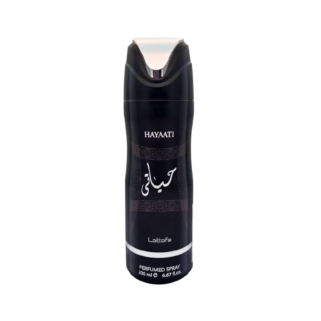 Spray concentrado en presentación 200ml del perfume Hayaati de Lattafa, con fijación de 6 horas aproximadamente.