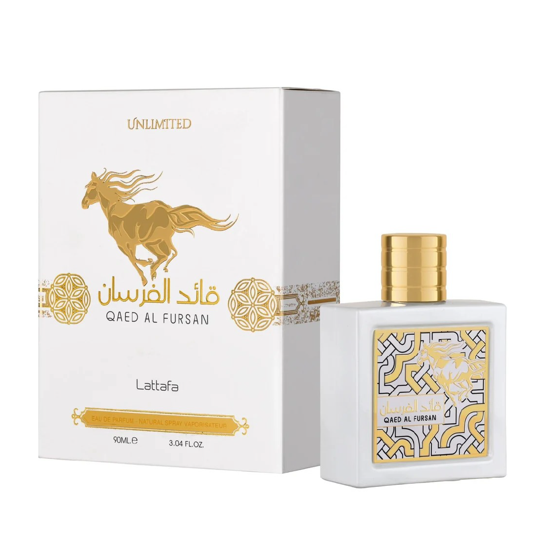Qaed Al Fursan Unlimited de Lattafa Perfumes es una fragancia de la familia olfativa para Hombres y Mujeres. Esta fragrancia es nueva. Qaed Al Fursan Unlimited se lanzó en 2022. Las Notas de Salida son coco, cítricos y piña; las Notas de Corazón son ylang-ylang, frangipani (plumeria, plumaria, atapaima) y jazmín; las Notas de Fondo son vainilla, almizcle, sándalo y notas dulces.