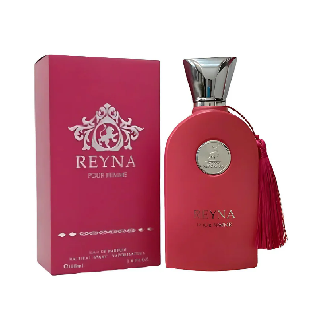 Reyna de Maison Alhambra es una fragancia de la familia olfativa Floral Frutal para Mujeres. Reyna se lanzó en 2023. Las Notas de Salida son mandarina, bergamota y toronja (pomelo); las Notas de Corazón son frambuesa, flor de azahar del naranjo y grosellas negras; las Notas de Fondo son malvavisco (bombón), crema batida, almizcle y almizcle ambreta.
