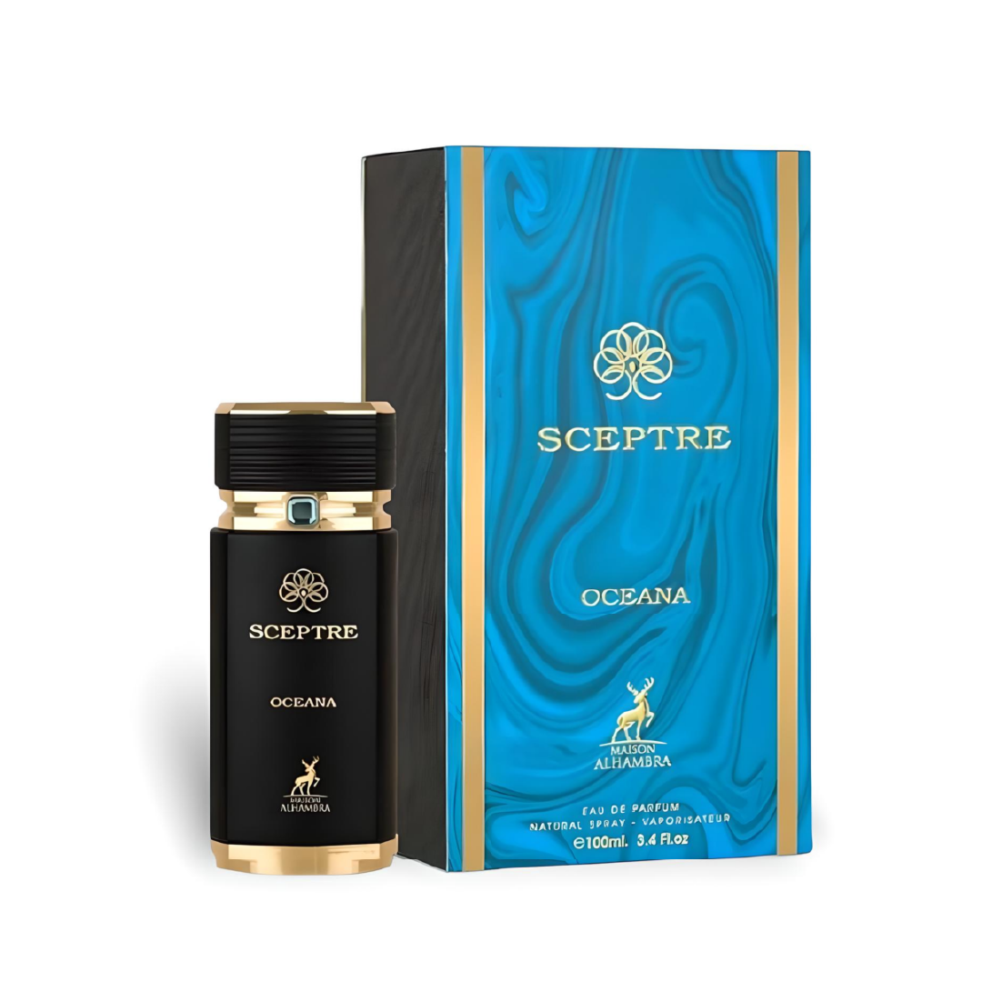 Sceptre Oceana de Maison Alhambra es una fragancia de la familia olfativa Oriental para Hombres. Sceptre Oceana se lanzó en 2022. La Nota de Salida es vainilla Bourbon; la Nota de Corazón es benjuí de Siam; la Nota de Fondo es madera de oud.