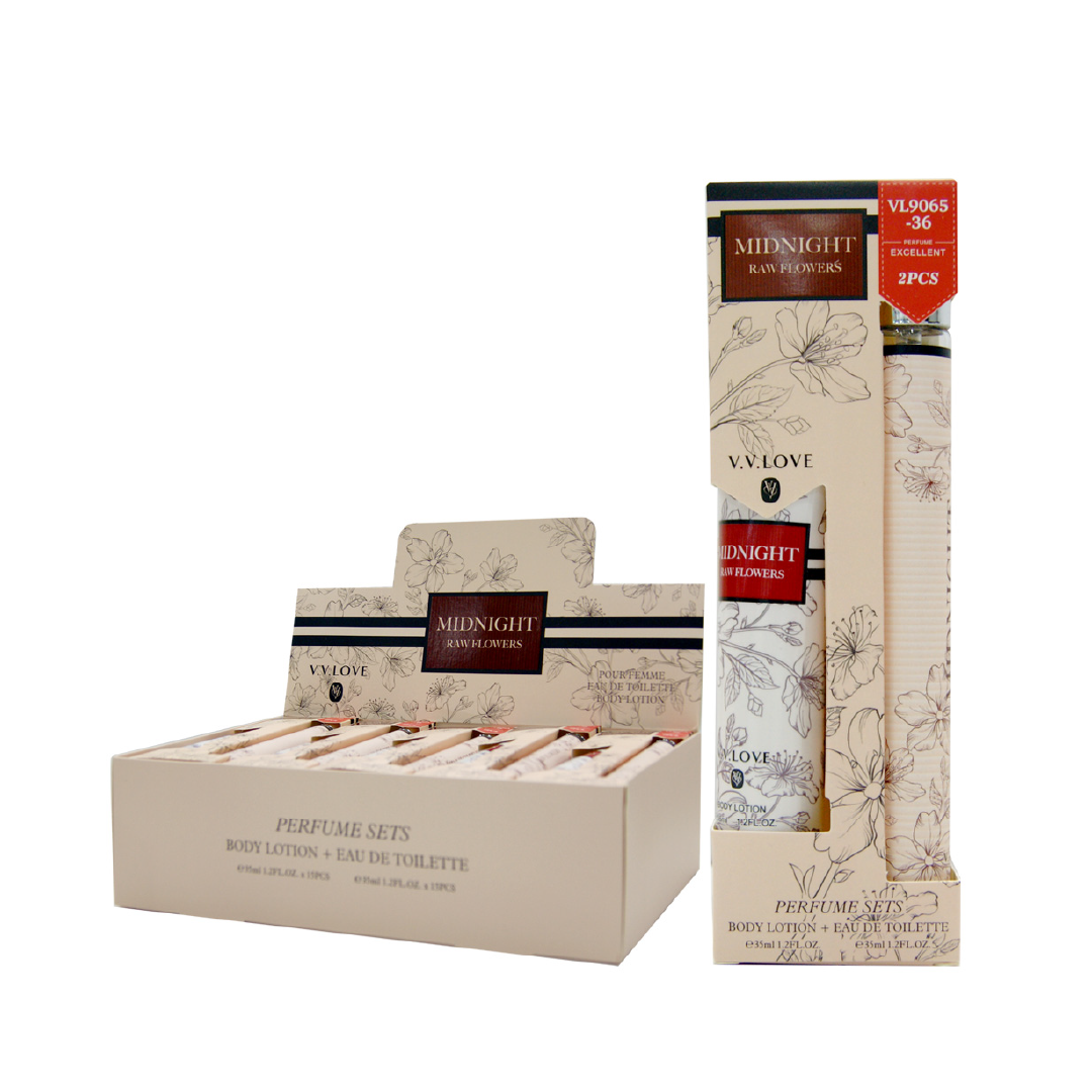 Set de perfume de la marca V.V. Love, contiene 1 crema y 1 perfume en eau de toilette de 35ml c/u.