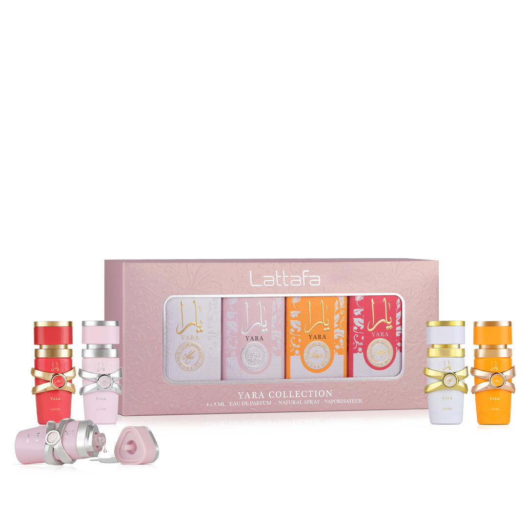 Set Yara Collection de Lattafa reúne cuatro perfumes femeninos en formato mini (5 ml cada uno) con perfiles variados que van desde dulces y gourmand hasta frutales y florales tropicales, todos compartiendo una base cálida de vainilla y almizcle con toques orientales suaves. Es ideal para regalar, viajar o cambiar de aroma según tu estilo y ocasión, ofreciendo versatilidad y encanto en cada fragancia.